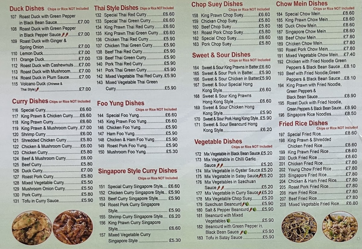 At Summer Palace, you'll find a diverse menu that caters to all tastes, featuring an impressive selection of seafood dishes, Singapore-style curries, and sweet and sour specialties. Indulge in the tantalizing King Prawn in Chilli and Garlic Sauce, a dish that brings together the freshness of succulent prawns with a kick of spicy garlic, all beautifully crafted for you at just £7.40. Another must-try is the Sweet and Sour King Prawns, perfectly battered and glazed, offering that delightful combination of tangy and sweet that warms the soul.